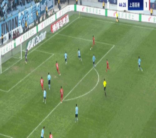 第45分钟,海港前场断球后制造威胁,皮球最终被没收