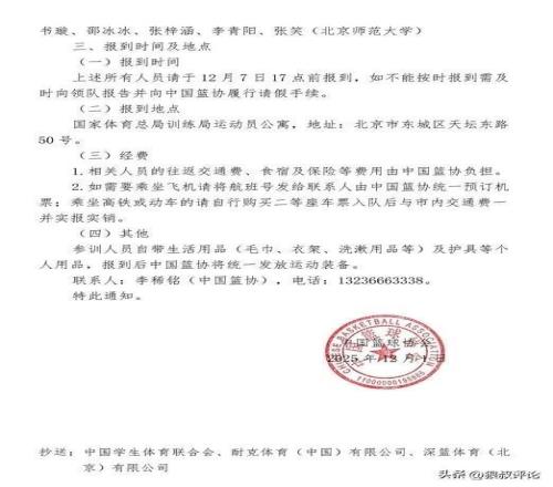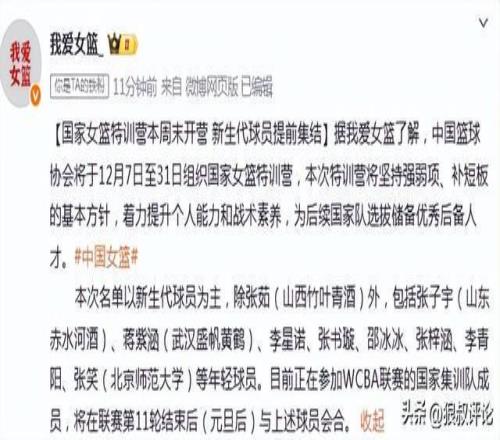 目前正在参加WCBA联赛的国家集训队成员,将在联赛第11轮结束后(元旦后)与上述球员会合。