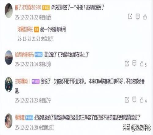 说了,欠薪就不配干职业球队。 本来CBA联赛就口碑不好,不如名额给香港。