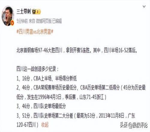 而本场比赛,四川男篮创造多个历史尴尬纪录。