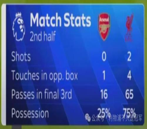 下半场72分钟,天空体育打出数据:当时的下半场数据,利物浦在进攻三区传球65次远超对手16次,控球率达到75%。