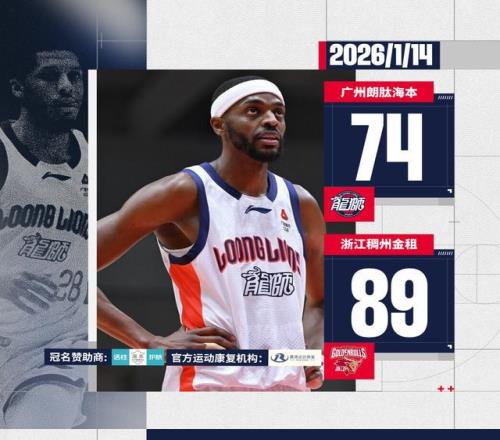 龙狮篮球俱乐部2026-01-14 21:46:582025-26赛季CBA常规赛第十五轮客场负于浙江广州朗肽海本 74 : 89负于浙