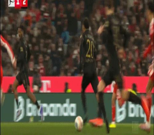 第29分钟,拜仁前场4打3,迪亚斯把球停大了,随后被达门化解