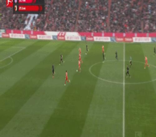 第81分钟,流畅配合,吉安努利斯倒三角,马森戈破门,奥格斯堡2-1拜仁
