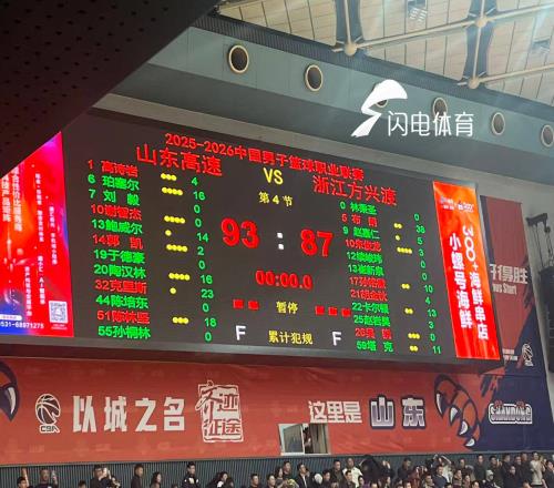闪电体育1月25报道今晚,CBA常规赛继续进行,本轮,山东高速男篮回归济南主场迎战联赛领头羊广厦。经过四节鏖战,最终,山东高速男篮93-87战胜广厦,迎回归省体后的开门红,取得三连胜!